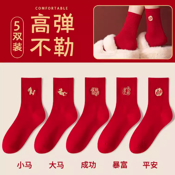 新年春节 马年好运袜 五双 10元包邮